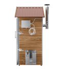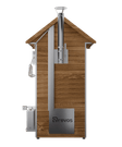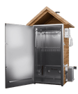 Покращений модульний блок керування (з'ємний) з ключем, Поличка зверху, Конвекційний тен: 2 шт, Металокаркас, Авторські навіси і засувки, Камера з нержавіючої сталі всередині, Накладні двері, Трикутні поперечини 8 шт, Гачки 30 шт, Регульовані полиці за висотою 2 ряди, Вентилятор просушування із зовнішнім шибером 1 шт, Злив для миття камери під кутом 1 шт, Нагнітач повітря равлик для димогенератора з можливістю працювати від павербанка 1 шт, Модульний димогенератор з охолоджувачем та фільтром 1 шт, Регульований димар з виходом під гофру 1 шт, Щуп для продуктів 1 шт, Інструкція з експлуатації 1 шт, Гарантійний талон 1 шт, Тріска 3 упаковки