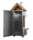 Покращений модульний блок керування (з'ємний) з ключем, Гарантія: 1 рік на всю комплектацію, Поличка зверху, Авторські навіси і засувки, Камера з нержавіючої сталі всередині, Накладні двері, Трикутні поперечини 6 шт, Гачки 20 шт, Регульовані полиці за висотою 2 ряди, Конвекція 1 шт, Вентилятор просушування із зовнішнім шибером 1 шт, Злив для миття камери під кутом 1 шт, Модульний димогенератор з охолоджувачем та фільтром 1 шт, Нагнітач повітря равлик для димогенератора з можливістю працювати від павербанку 1 шт, Регульований димар з виходом під гофру 1 шт, Інструкція з експлуатації 1 шт, Гарантійний талон 1 шт, Тріска 3 упаковки