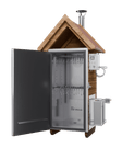 Покращений модульний блок керування (з'ємний) з ключем, Вентилятор для сушіння у камері, Поличка зверху, Авторські навіси і засувки, Камера з нержавіючої сталі всередині, Накладні двері, Трикутні поперечини 6 шт, Гачки 15 шт, Регульовані полиці за висотою 2 ряди, Конвекційний тен: 1 шт, Вентилятор просушування із зовнішнім шибером 1 шт, Злив для миття камери під кутом 1 шт, Модульний димогенератор з охолоджувачем та фільтром 1 шт, Нагнітач повітря для димогенератора з можливістю працювати від павербанку 1 шт, Регульований димар з виходом під гофру 1 шт, Інструкція з експлуатації 1 шт, Гарантійний талон 1 шт, Тріска 3 упаковки